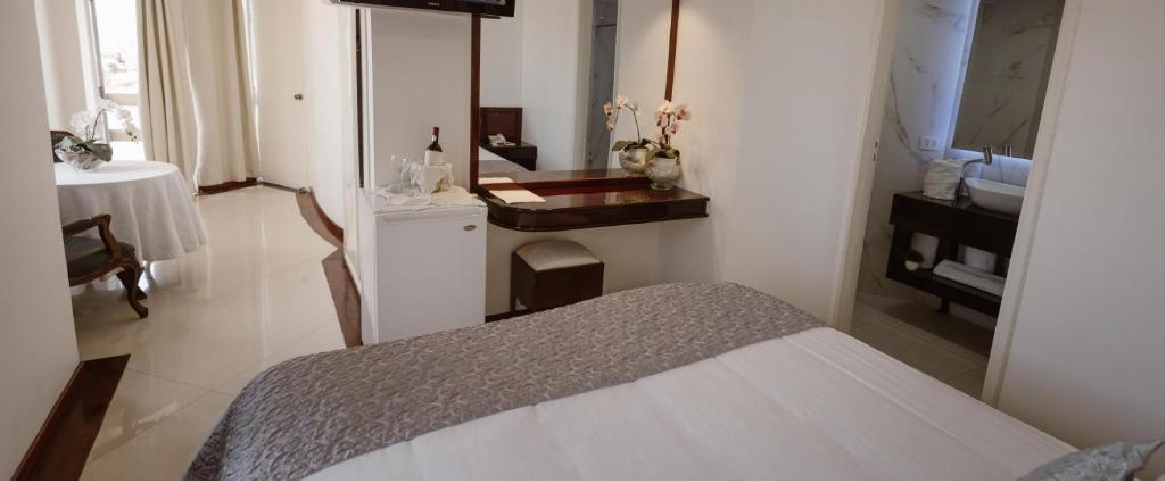 Amplia habitación con cama extragrande, aire acondicionado, TV de plasma y baño privado bidé y secador de pelo. Tiene suelo de baldosa, zona de estar con TV de pantalla plana por cable, aire acondicionado, minibar y armario.